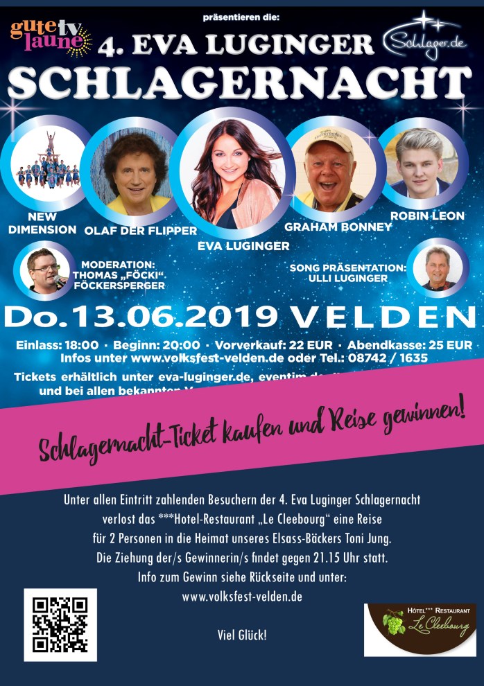 2019 hat er den Verein Freundschaft Elsaß-Bayern e. V. als Paten für den jungen elsässischen Schlagersänger Robin Leon gewonnen, der bei Eva Luginger seinen ersten Auftritt in Bayern absolvieren wird. Außerdem verlost das Hotel-Restaurant „Le Cleebourg“ in Rott bei Wissembourg unter allen Eintritt zahlenden Gästen der Schlagernacht eine Kurzreise ins Nordelsass.