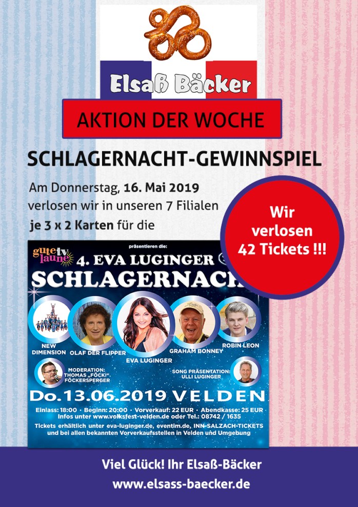 Kategorie: Aktion der Woche, TalentförderungSchlagworte: Eva Luginger Schlagernacht, Ticket-Verlosung