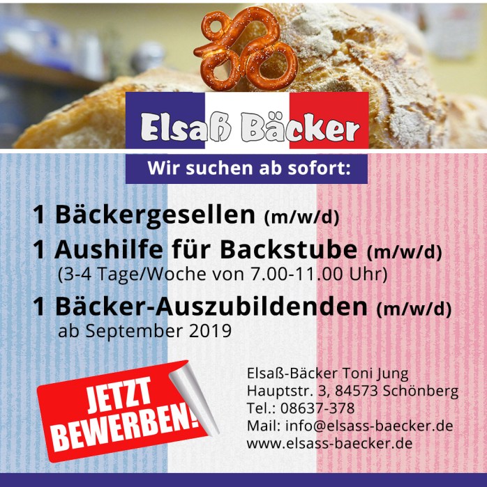 Kategorie: Allgemein, StellenangeboteSchlagworte: Ausbildung, Aushilfe, Bäcker, Fachverkäufer
