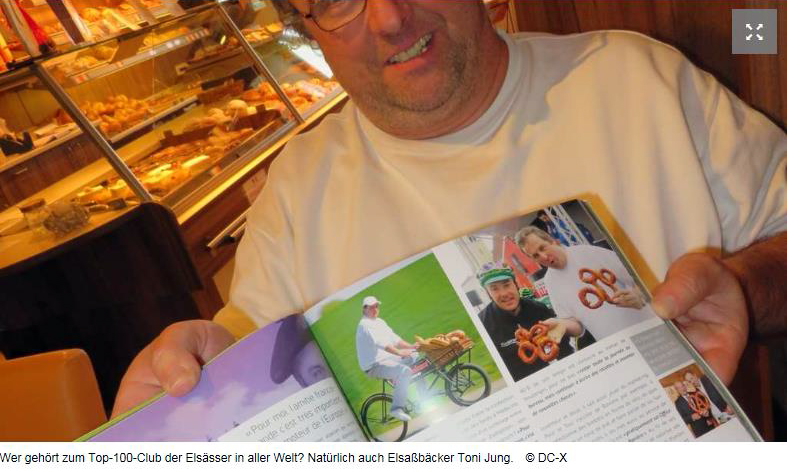 Schönberg – Spitzbübisch blättert Antoine Jung in einem Bildband. Wer den Elsaßbäcker kennt, weiß: Jetzt präsentiert er etwas, womit man nie rechnen würde. Rallyefahrer Sébastien Loeb ist im Buch zu finden, der Kabarettist Etienne Gillig und der Handball-Torwart Thierry Omeyer – alles prominente Elsässer. Und plötzlich grinst auch Toni Jung aus dem Buch: „Ich zähle zu den 100 berühmtesten Elsässern auf der Welt“, erklärt Toni Jung umgehend und nicht ohne Stolz.