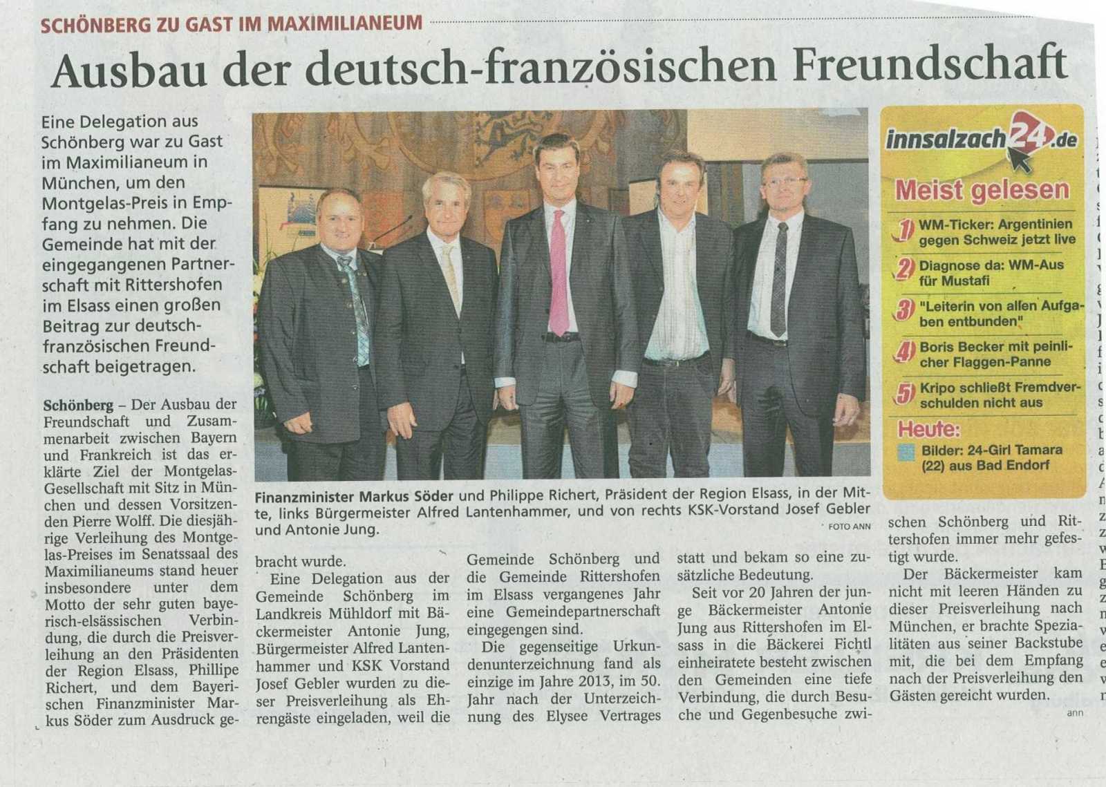 Unterstützung der Montgelas-Gesellschaft e. V.Das Ziel der Montgelas-Gesellschaft e. V. ist die Förderung der bayerisch-französischen Zusammenarbeit in allen Bereichen. Die Gesellschaft wird geleitet durch den Vorsitzenden Pierre Wolff.